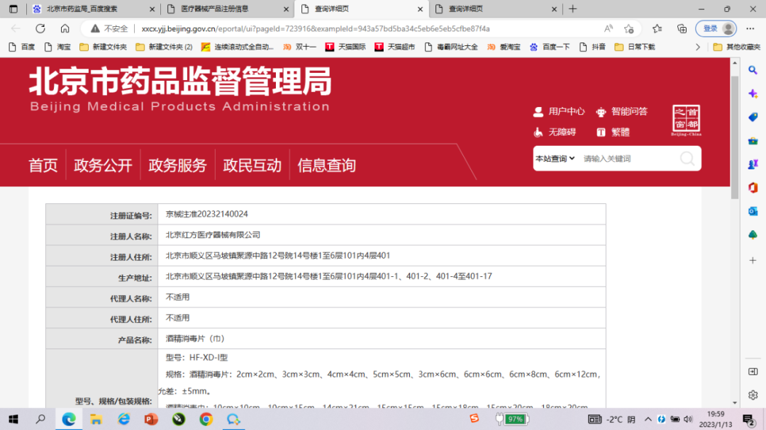 酒精消毒片(巾)在北京市藥監(jiān)局網(wǎng)站上公示信息