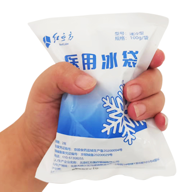 北京紅立方溫馨提示:捏爆-搖冷-隔墊敷-15分鐘-剪倒-扔袋-洗手,即可完成一次性速冷冰袋的全流程。