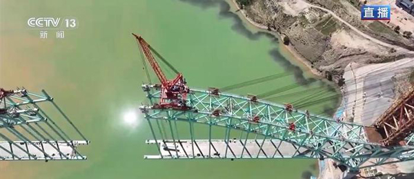 該橋位于青海省黃南藏族自治州尖扎縣與海東市化隆回族自治縣交界處,是川青鐵路關(guān)鍵的橋梁工程,總長1596.2米,拱頂距水面高達130米,橋面距離黃河水面55米,施工難度極大。大橋兩側(cè)主墩吊索塔架于6月14日完成封頂,原計劃于今年8月實現(xiàn)主橋合龍。單座塔架重達1800噸,邊跨最大索力達1161噸,安裝精度至關(guān)重要。